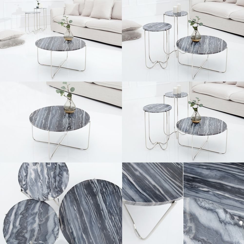 - Couchtisch FLORENTIN Grau Marmor mit Silber Gestell 62cm Ø