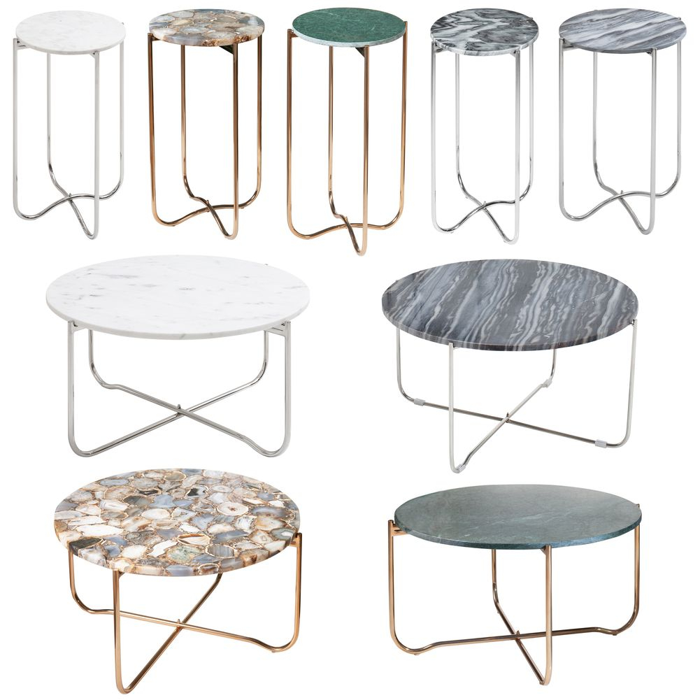 Die lieferbaren Modelle der Beistell- und Couchtische mit echten Marmorplatten auf einen Blick (siehe Fotos):