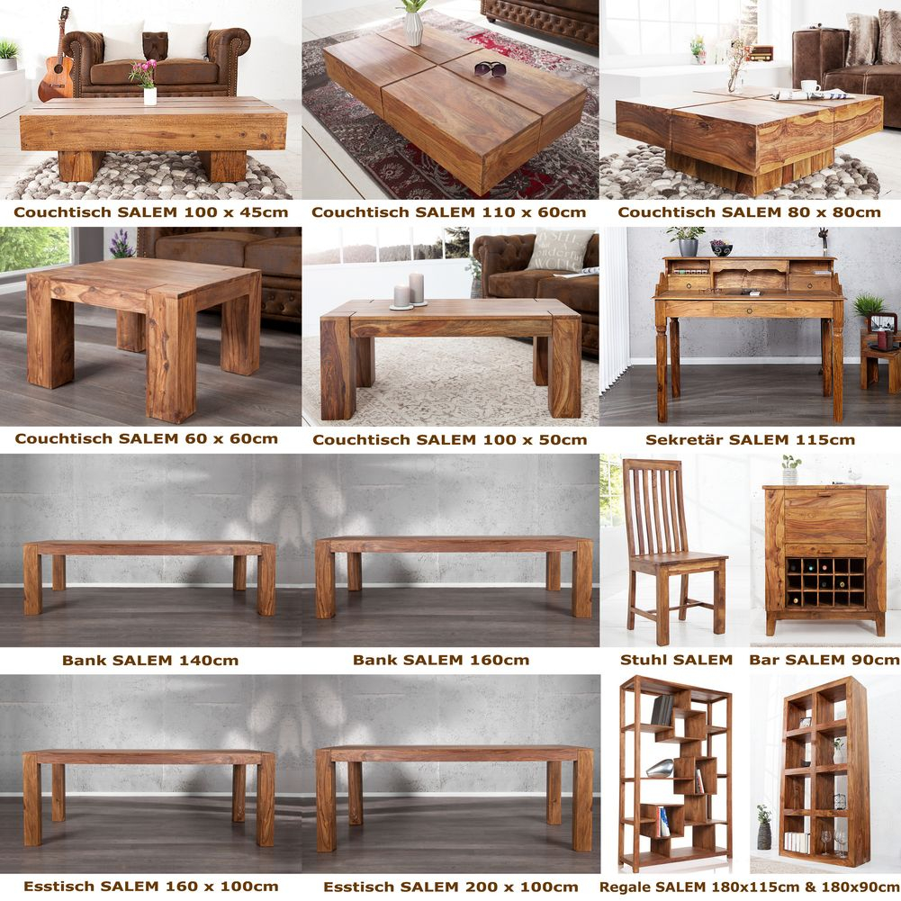 - Couchtisch SALEM massiv Sheesham 110cm x 60cm