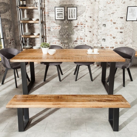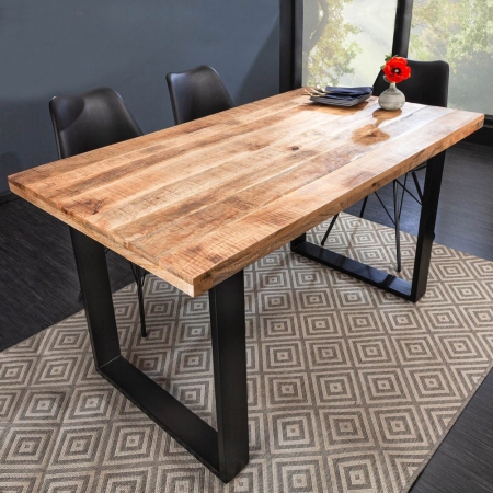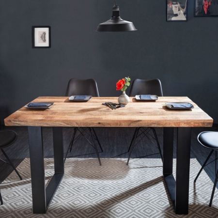 - Esstisch TAMAN Natur Mangoholz massiv mit U-Gestell aus Eisen pulverbeschichtet Schwarz 120cm, 140cm, 160cm, 180cm und 200cm
