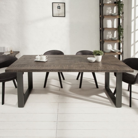 - Bartisch TAMAN Grau Mangoholz massiv mit U-Gestell aus Eisen pulverbeschichtet Anthrazit 120cm