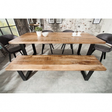 - Sitzbank TAMAN Natur Mangoholz massiv mit X-Gestell aus Eisen pulverbeschichtet Schwarz 160cm und 200cm