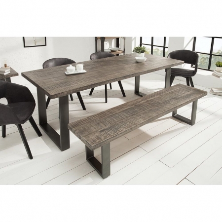 - Sitzbank TAMAN Grau und Natur Mangoholz massiv mit U-Gestell aus Eisen pulverbeschichtet Schwarz 170cm