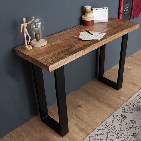 - Konsole TAMAN Grau und Natur Mangoholz massiv mit U-Gestell aus Eisen pulverbeschichtet Schwarz 115cm