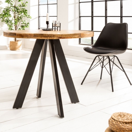 - Esstisch TAMAN Rund Grau und Natur Mangoholz massiv mit Tischbeinen aus Metall Schwarz 80cm Ø
