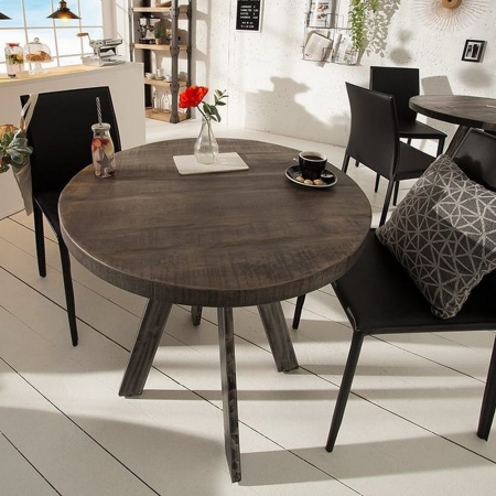 - Esstisch TAMAN Rund Grau und Natur Mangoholz massiv mit Tischbeinen aus Metall Schwarz 120cm Ø